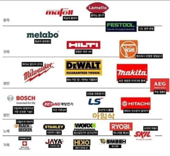 - 특징: 미국 브랜드, 내구성 뛰어남, 건설업에 강함
